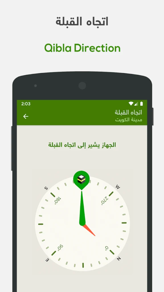 🔹 تحديد اتجاه القبلة